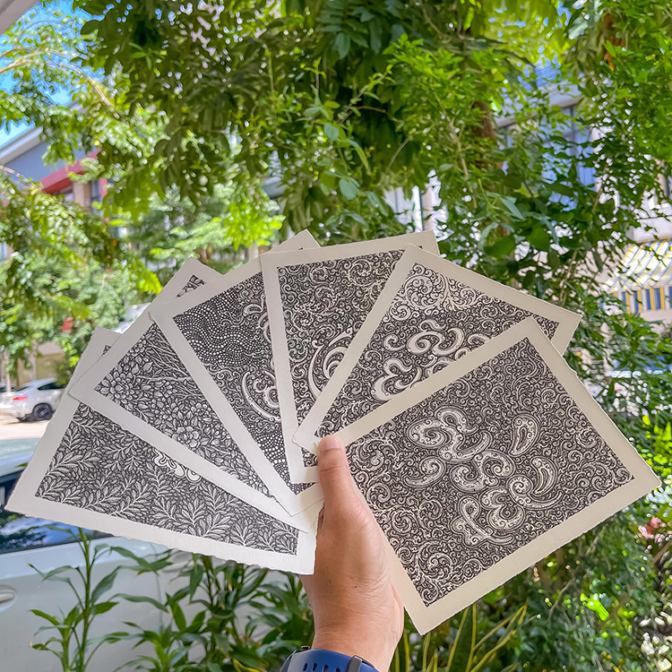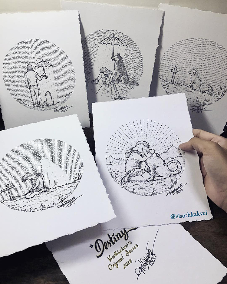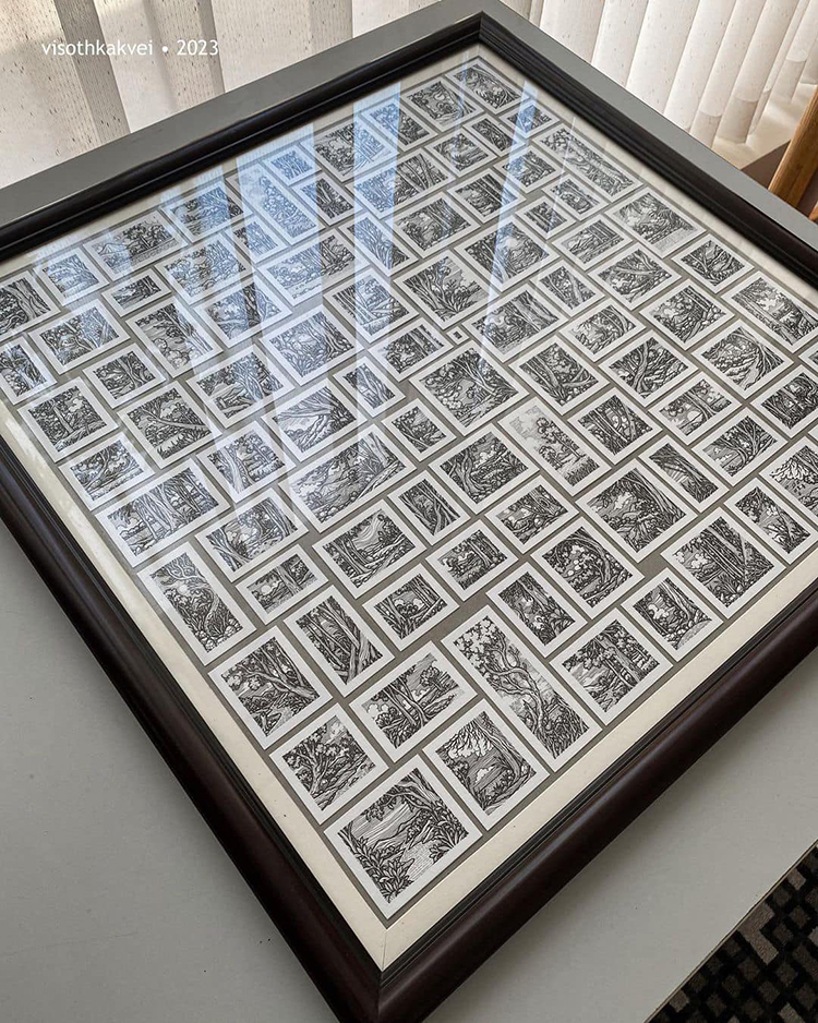 擁有天分是一方面,不浪費這份天分又是另外一方面。為了提升繪畫技巧,Visoth Kakvei筆耕不輟,走到哪就畫到哪,放眼望去遍地都是畫布,筆桿子都磨出火星子了。