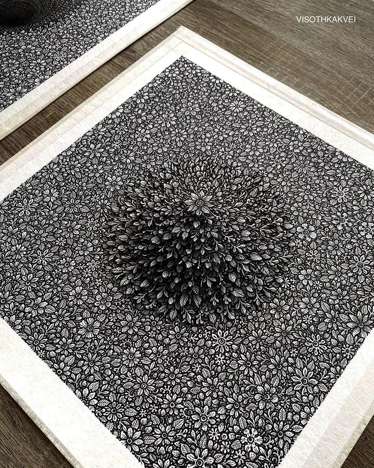 從他前幾張作品我們不難看出,畫作的復雜程度已經不能滿足Visoth Kakvei了,突破二維平面空間限制才是他的目標。