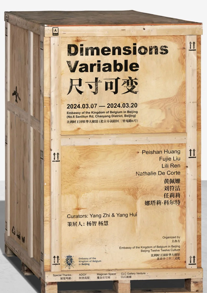 為慶祝國際婦女節,比利時駐華大使館搬遷后推出首個對公眾開放的展覽“尺寸可變”, 展覽由楊智、楊慧策劃,在使館的“錢秀玲廳”舉辦,呈現來自當代女性藝術家黃佩姍、劉符潔、任莉莉、娜塔莉?科爾特的16件雕塑和裝置作品。展覽標題“尺寸可變”來自于一個常用的術語,用來描述那些尺寸不易用物理標準界定的藝術作品。此次展覽是歐盟在中國開展的名為#賦麗前行# (Empower Her March) 國際婦女節活動的一部分,“賦”來自賦權(empowerment),“麗”代表女性,意在慶祝全世界婦女的創造力和賦權。
