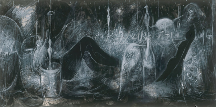 虛幻 紙本、油彩、油畫棒、墨 68x137cm 2023