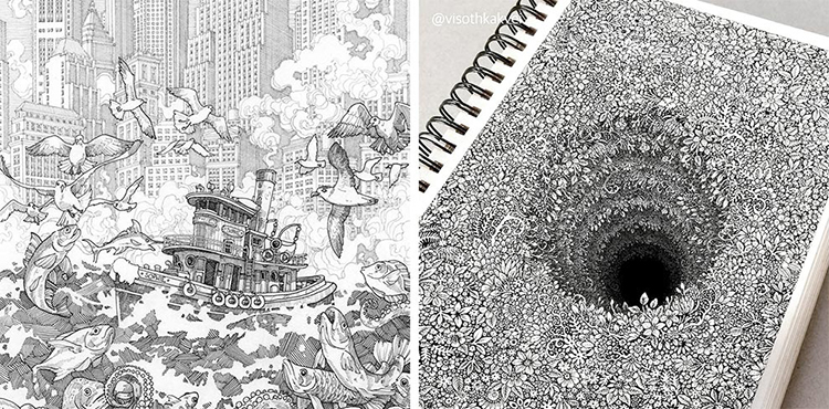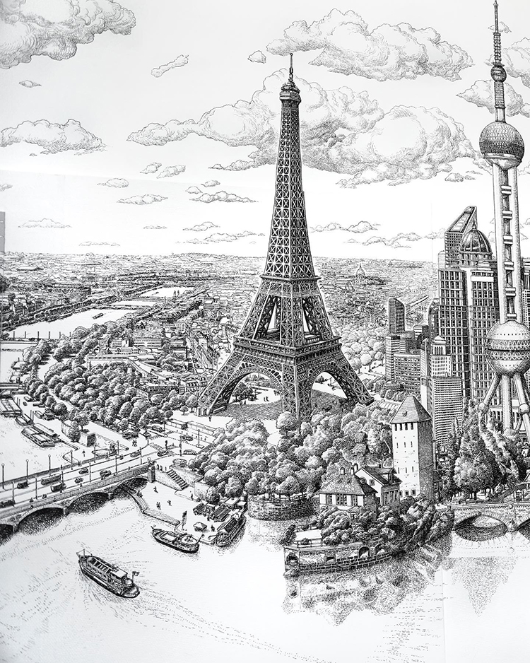 《一支針管筆能畫出什么?》系列現在來到了第三期,在前兩期當中我們分別介紹了兩位針管筆大神:Maxwell Tilse和Visoth Kakvei,兩位藝術家可謂是風格各異,Maxwell Tilse的筆觸細膩多變,Visoth Kakvei則是將畫面立體化: