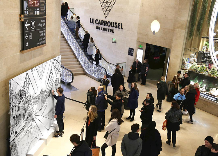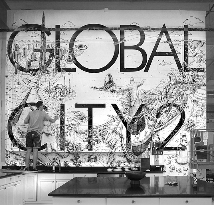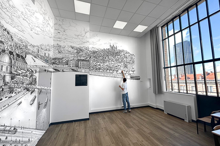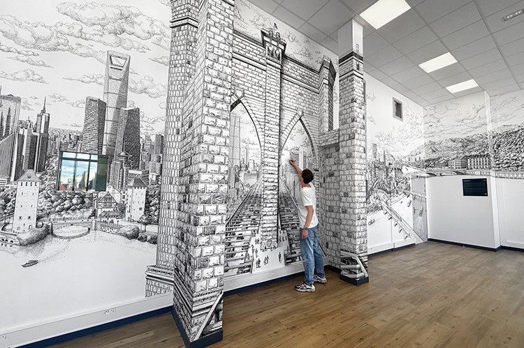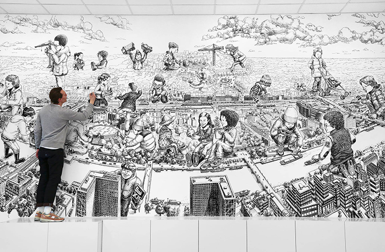 托馬斯?達蒂格斯(Thomas Dartigues,又名Decktwo),法國藝術家,畢業于普瓦捷高等圖像學院。他最早是一位街頭涂鴉藝術家,但創作時不喜歡用噴罐,而是主要用針管筆。 2006年他被選中為巴黎Arums Gallery畫廊粉刷繪制墻壁,其繪畫才華由此被發掘出來, 并很快火遍全世界,收獲一大片粉絲。
