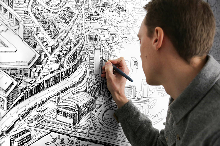 而接下來出場的這位針管筆大神同樣有著自己的獨門絕技,人送外號“城市打印機”: