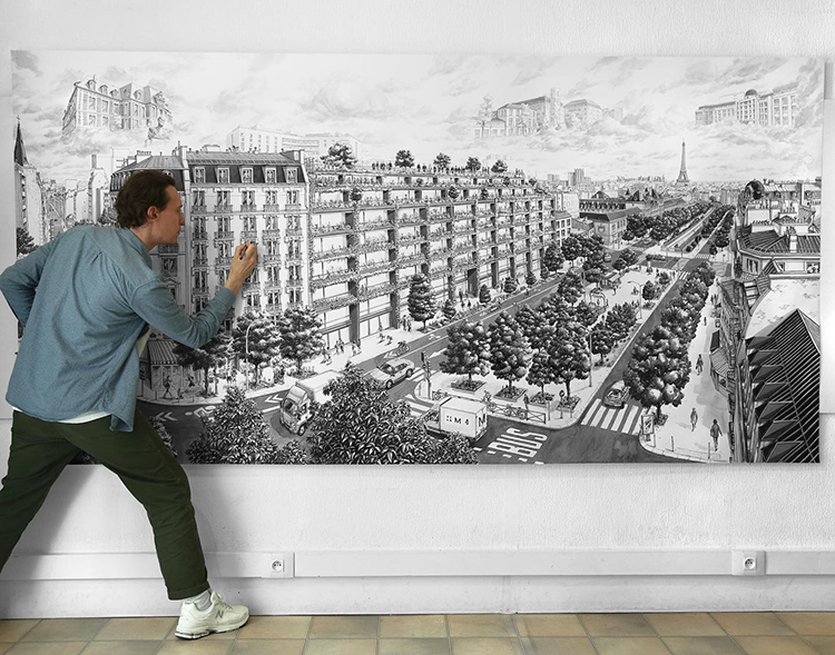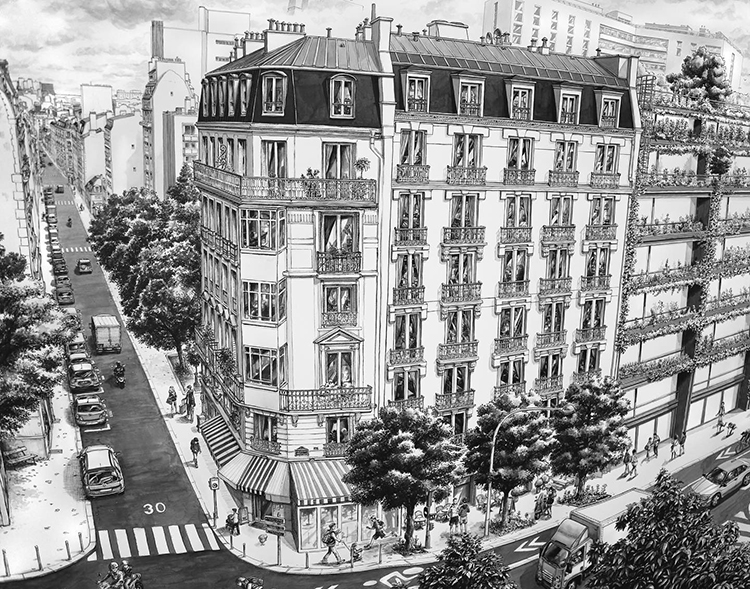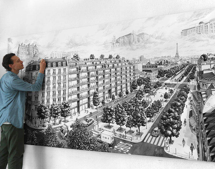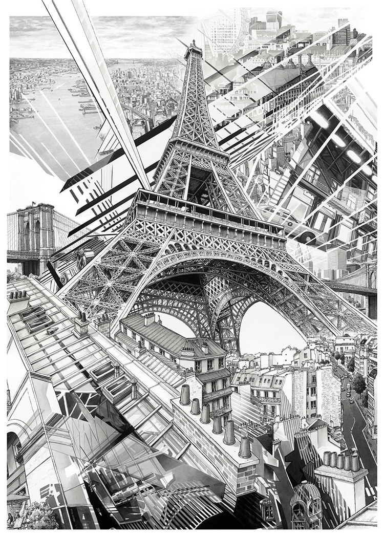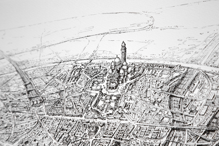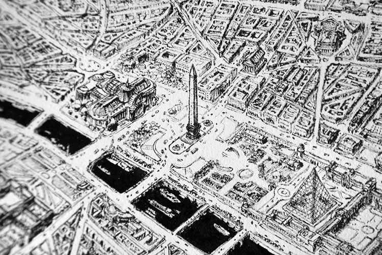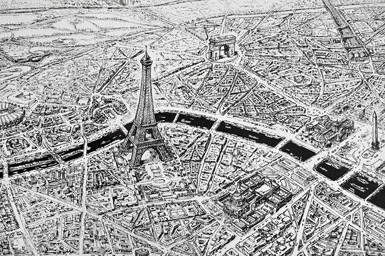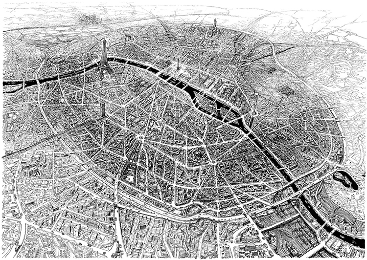巴黎這座城市一直深深吸引著Thomas Dartigues,他說,巴黎最迷人的地方在于中心向四周擴散的建筑特點。既然這么喜歡,于是他就畫了一個巴黎: