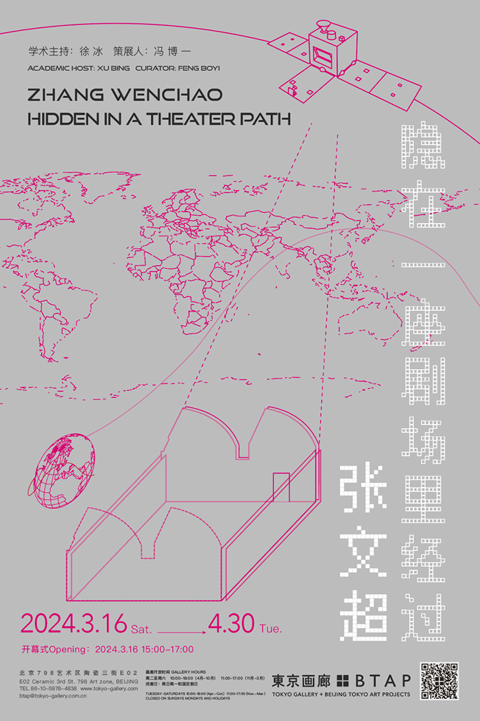 在這次展覽中,張文超通過虛擬與現實的互文嵌套,歷史敘事與個人想象的巧妙對接,并融入了宇宙、幻想、推演、懸疑等元素,創造出一幕幕奇異和沉浸感的多重視域。他根據東京畫廊+BTAP的空間結構,將整個展覽設置為劇場的概念,通過序幕和五場劇目的片段,將參展作品進行了自主導航和交叉漸進,營造出蒙太奇般的漫游體驗,戲劇化的沖突感受,以滿足著在線群體對新鮮故事的好奇與欲望。由此建構了他的“流行劇本”,抑或也是他始終視覺演繹著不斷變異的“無限劇場”。