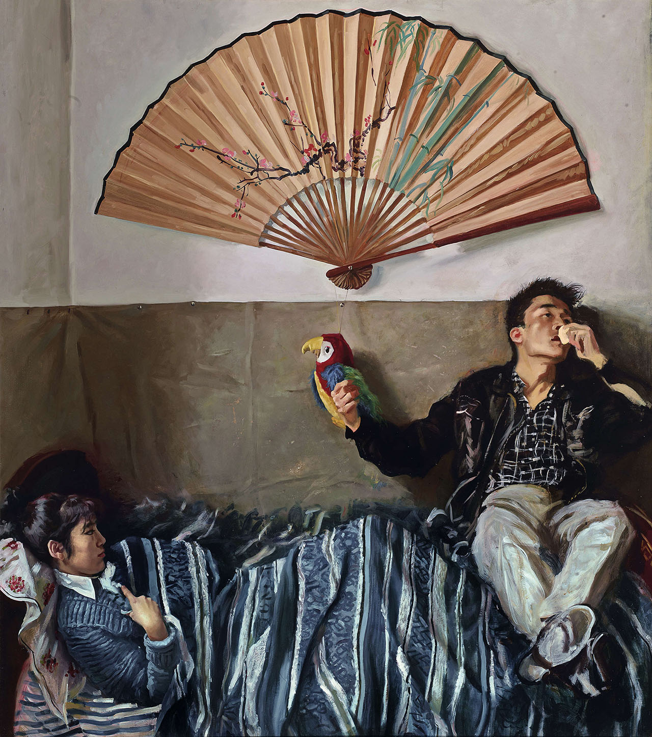 趙半狄,《鸚鵡與扇子》,200×175.5cm,布面油畫,1990