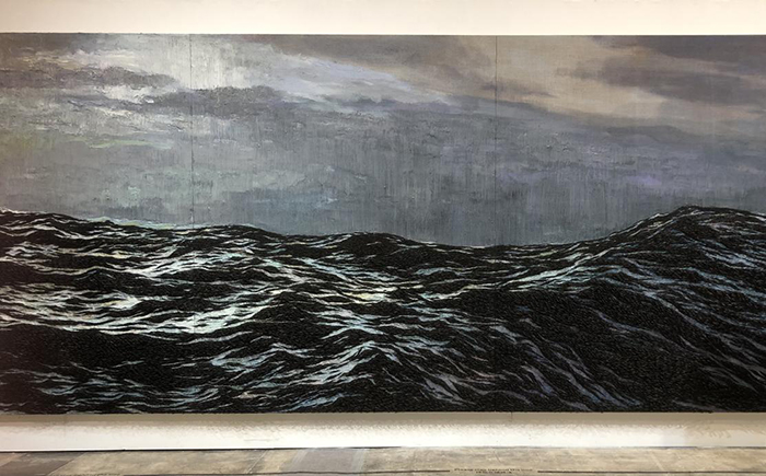 尤安?卡波特的作品遠看是平靜的海面,近看卻是暗流涌動,無數堅硬的魚鉤組成的浪潮帶來強烈的壓迫感,似乎隱喻著當下國際形勢的變幻莫測。