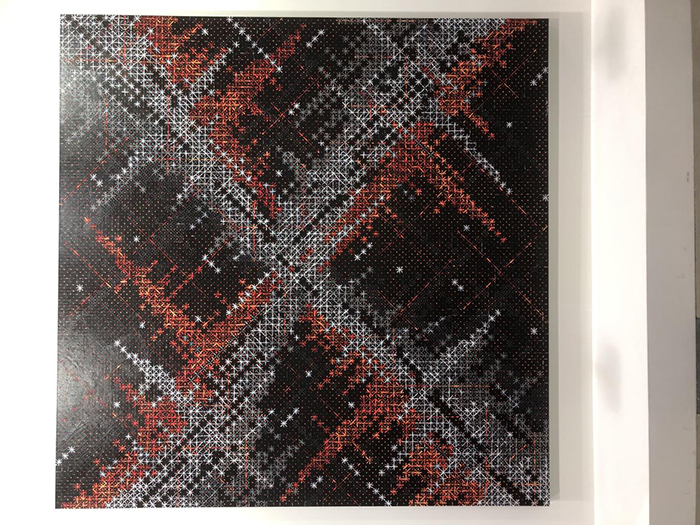 這些軟雕塑或壁掛和現場其他摩登的作品形成了強烈的對比。藝術家的手稿總比冷漠的軟件要打動人,纖維藝術亦如此,這些溫潤的手工感既有對當下焦慮心情的一種舒緩,亦有藝術家對信念的體現,對非遺手藝的堅守,通過這種既傳統又現代的方式連結歷史與未來,探索歷史記憶對社會經驗的影響,這種影響是超越政治的。