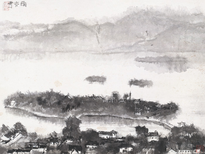 李可染與張仃、羅銘結伴,三個月中途徑無錫、太湖、蘇州、上海、杭州、富春江和黃山。他們一路住馬車店,吃路邊攤,100元花了幾個月,飽覽江南風景,寫生收獲頗豐。面對靈秀又詩情畫意的江南煙雨,李可染以中國畫的筆墨還原視覺的真實。他留意寫生時所見到的一切,并嘗試用新的形式語言表現其靜觀自然收獲到的一份天趣?!队暌嗥妗?、《家家都在畫屏中》等作品中技法上的多樣性和豐富性令人耳目一新。