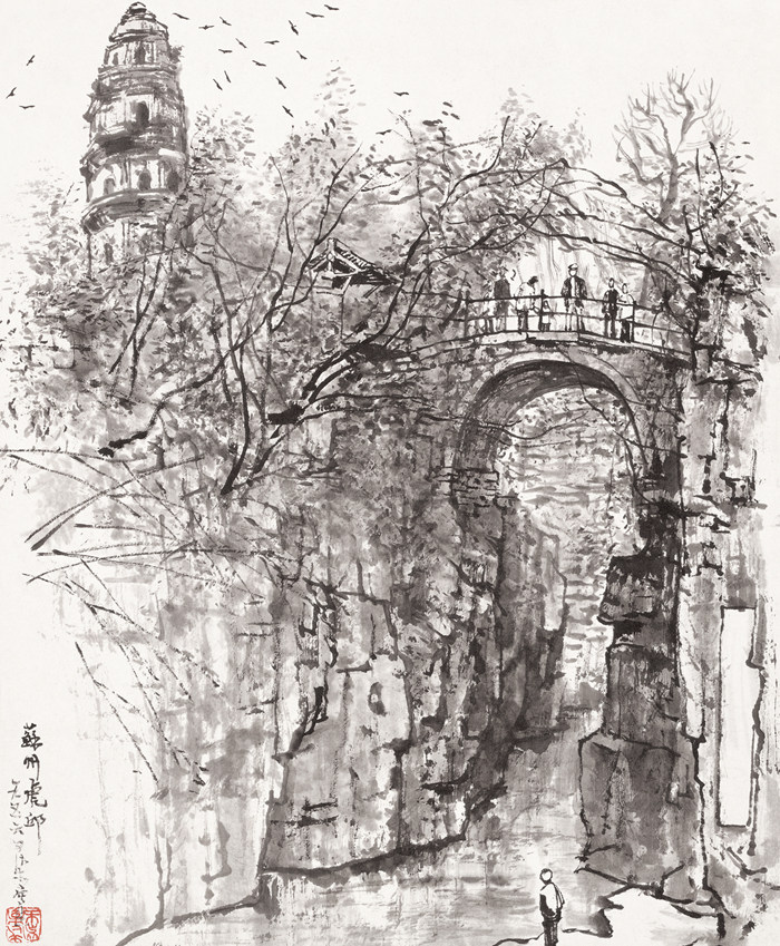 李可染《蘇州虎丘》45x37.5cm 1956年 設色紙本
