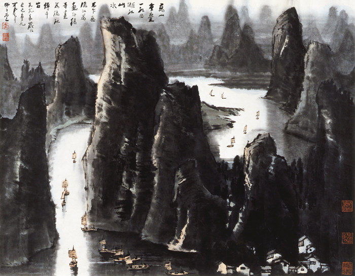 李可染《萬山重疊一江曲》82x105cm 1989年 設色紙本