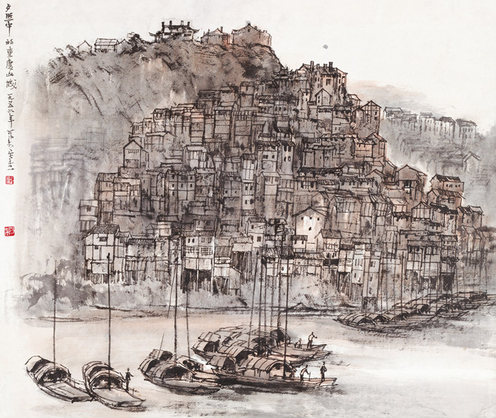 李可染《夕照中的重慶山城》45x53cm 1956年 設色紙本