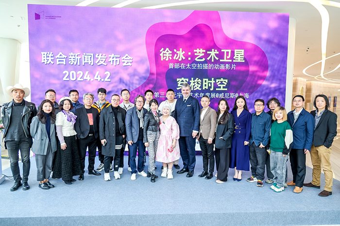 2024年4月2日,《徐冰:藝術衛星——首部在太空拍攝的動畫影片》《穿梭時空——第三屆元宇宙藝術年度展@威尼斯@上?!穬纱蠹磳⒃谝獯罄崴故⒋罅料嗟乃囆g展覽,于鳳凰中心正式發布。