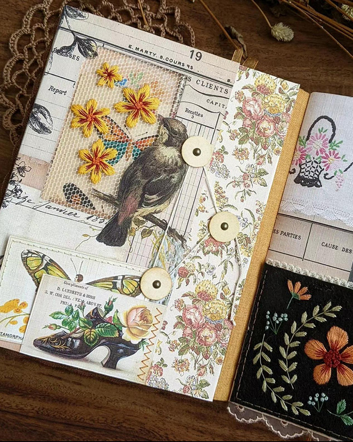綜合材料手工書,是將紙張與其他材料(如布、木、金屬、塑料等)相結合而成的。這類手工書有獨特的視覺效果和觸感,也有很強的視覺沖擊力和創意性。