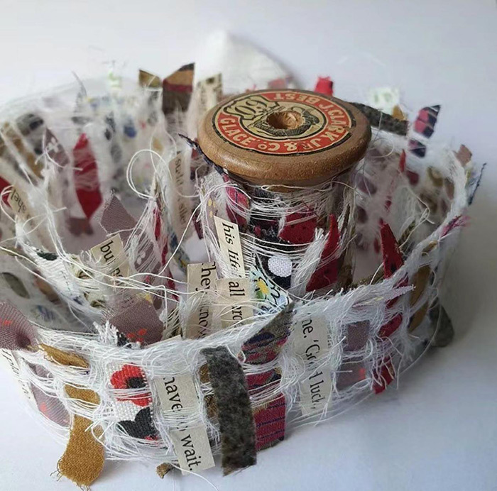 藝術家Magdalena Haras摘錄了Slawomir Rawicz 的《長途跋涉》(The long Walk),使文學作品成為鞋的一部分,用以暗指藏在鞋底的秘密信息。引用的詩文內容和手工書的形體互相援引,互相解釋,在更多維度上給予觀者信息,調動視覺、觸覺、感覺,成為立體化感知的巧妙支點。