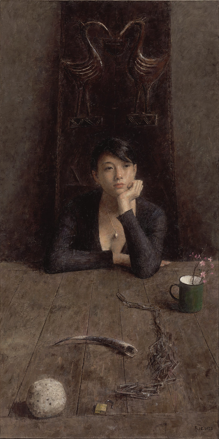 他的人物畫作品一看之下雖接近中國工筆畫意蘊,但又由于油畫材料本身的文化規定性使得這些作品更具備現實感和豐富性;而與傳統的西方古典藝術相比,這些作品的色彩和空間處理方式則是更具備一種中國傳統繪畫的審美格調,從而在一定程度上做到了西方油畫的堅實感與中國畫的空靈性并存,最終達到了一種君子質如玉、尊嚴而不悲壯、溫和卻又永恒的審美境界。