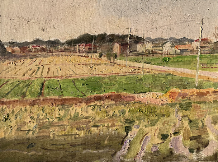 《六都鎮的農田》布面油彩 30X40cm 2024年
