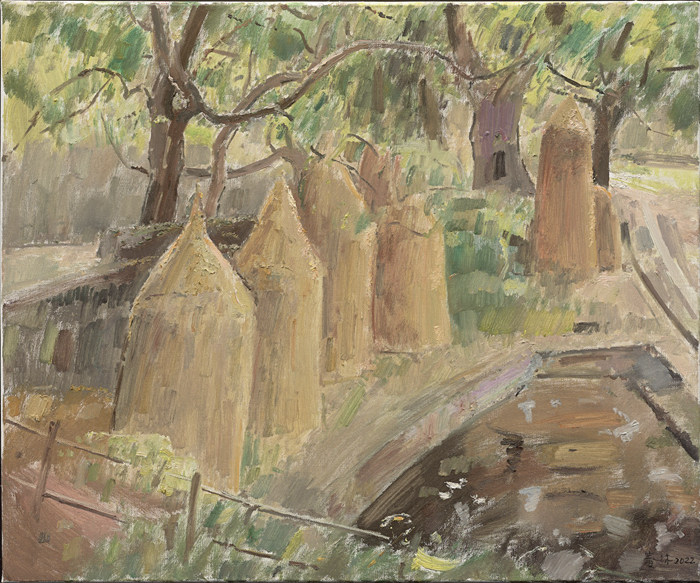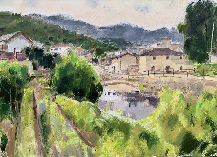 江西人杰地靈,歷史文脈深厚,寫生中,我們不僅追尋先人的足跡,同時也在見證時代的變遷。此時的鄉野已不同于過往,既有古意,又有發展中的現代氣息,鄉土并不土,青山綠水間透著詩意田園的寧靜,在這里,美隨處可尋。大自然神奇美妙,一切的豐盛與榮耀都隱藏其中?;蛟S我們習以為常,視而不見,錯過了很多,但上天從不吝嗇饋贈,無時無刻不在顯明祂的作為。只要你愿意打開心扉,尋找就會尋見,叩門就會開門。太初有道,道不遠人,驀然回首,美就在燈火闌珊處。人生百味,都是過客,總在得失之間糾纏。每個人都需要被愛充盈,被光引導,心中有愛,讓愛自然生發,滌蕩心靈、舒緩神經。每次離開都市的喧囂,心在創作中總是被療愈,雖艱辛但充實快樂,收獲滿滿。