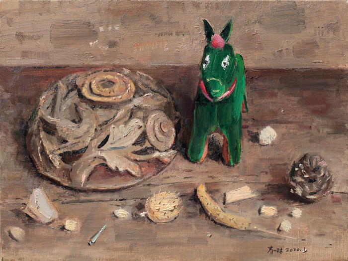 朱春林的靜物畫在一定程度上接續了這個傳統,只不過他的表現對象由莫蘭迪的宇宙秩序轉向了人類個體生命的日常的永恒。這種永恒通過那些年代久遠的祖母傳下來的舊物,通過那些舊物上留下的幾代人幾春秋的印記,朱春林捕捉這些靜止的視覺形態來表征某種動態的、生命中永恒的安寧。在一定程度上可以說,朱春林將靜物人物化了,正如他將人物靜物化一樣。