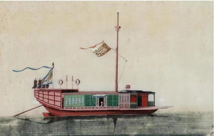 19世紀末通草水彩“兩廣部堂”船舶圖 廣州十三行博物館藏