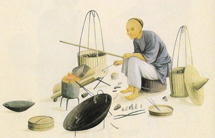 作為一種旅游紀念品,西方游客并不要求通草紙水彩畫達到很高的藝術水平,他們感興趣的是異域風情、市井雜俗、千奇百怪、生動有趣。因此,街市雜販人物題材的通草紙水彩畫頗受西方游客的青睞。