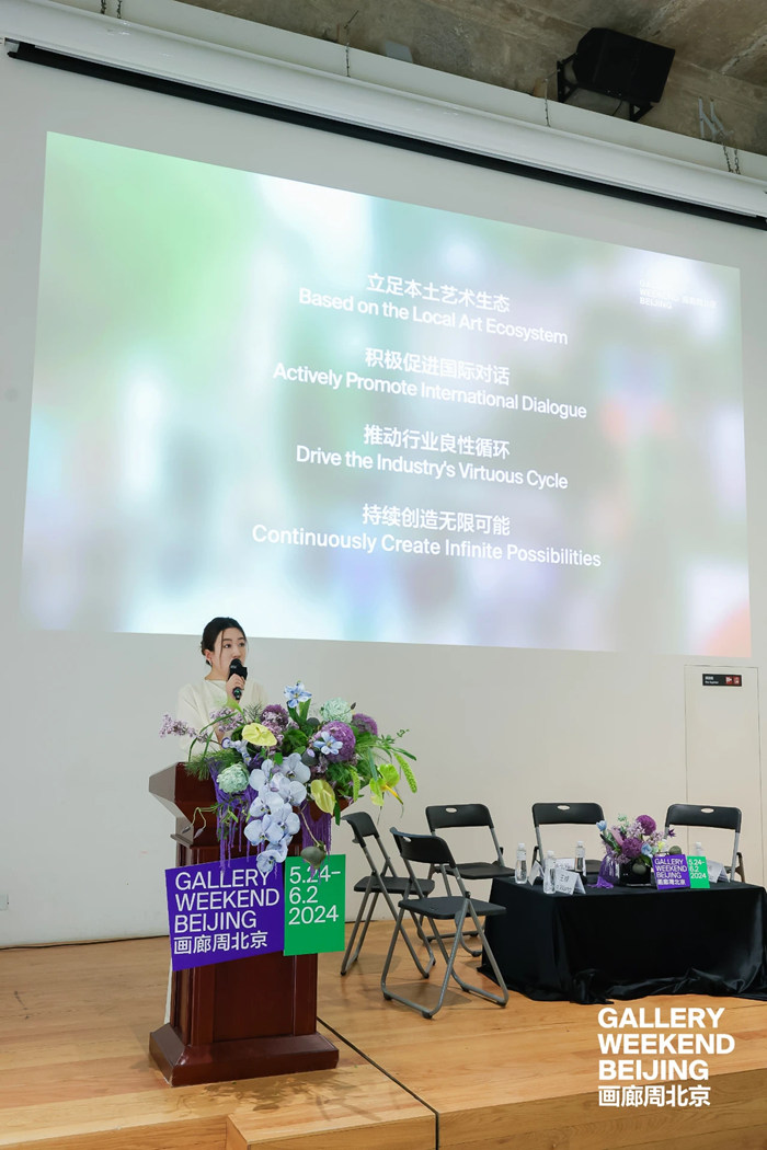 畫廊周北京項目總監楊佳霖女士表示:"畫廊周北京自誕生以來,便以作為當代藝術行業內各方溝通的橋梁為榮,在國際交流、旅行、商務往來日益繁盛的今天更不例外。由我們引領的國際交流的規模與質量,將達到當代藝術行業內新的高度。我們期待與國內外的畫廊、機構、藝術家共建良好及可持續的藝術生態。"