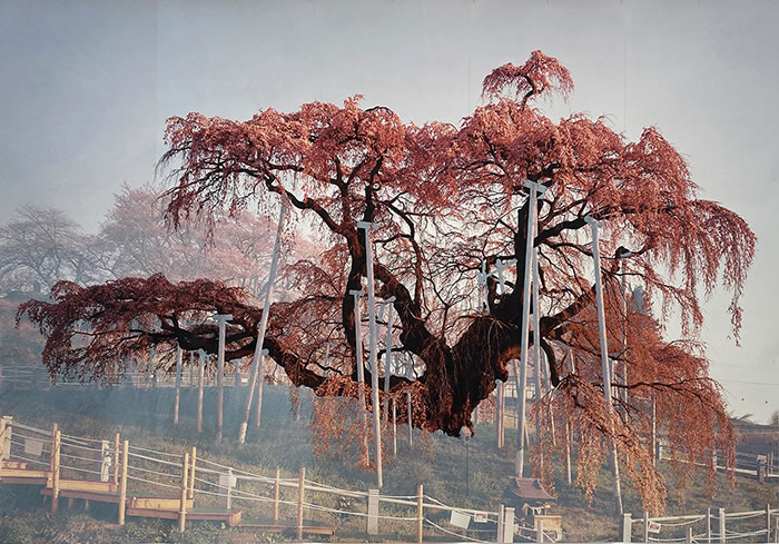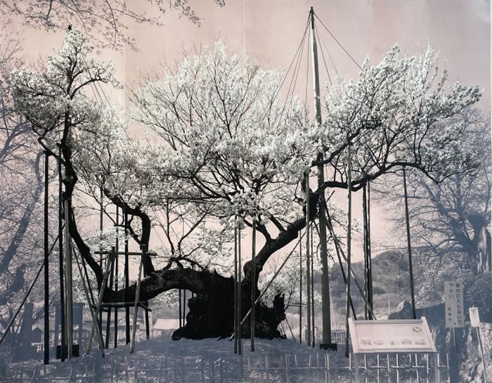英國藝術家塔西塔·迪恩(Tacita Dean)的作品具有詩意化的影像魅力。她真正的主題是圍繞著時間的流逝展開,她利用所有的媒介揭示了時間的碎片,探索了人類的故事和態度,一直延伸到世界的盡頭。她被日本兩棵獨特的樹——櫻桃樹和福島核電站的幸存者——迷住了,在一場大型展覽中,她展示了自己對自然近乎形而上學的、全面的方法。樹的每一根樹枝都由當地居民修復,用木桿支撐受損和疲憊的樹枝,就像拐杖一樣。兩棵老樹被加倍照顧,并繼續開花幾天。迪恩拍攝了照片,然后用彩色鉛筆手工增強了大型銀明膠版畫的效果,因此樹木呈現出像帶著支架的云一樣漂浮的印象。