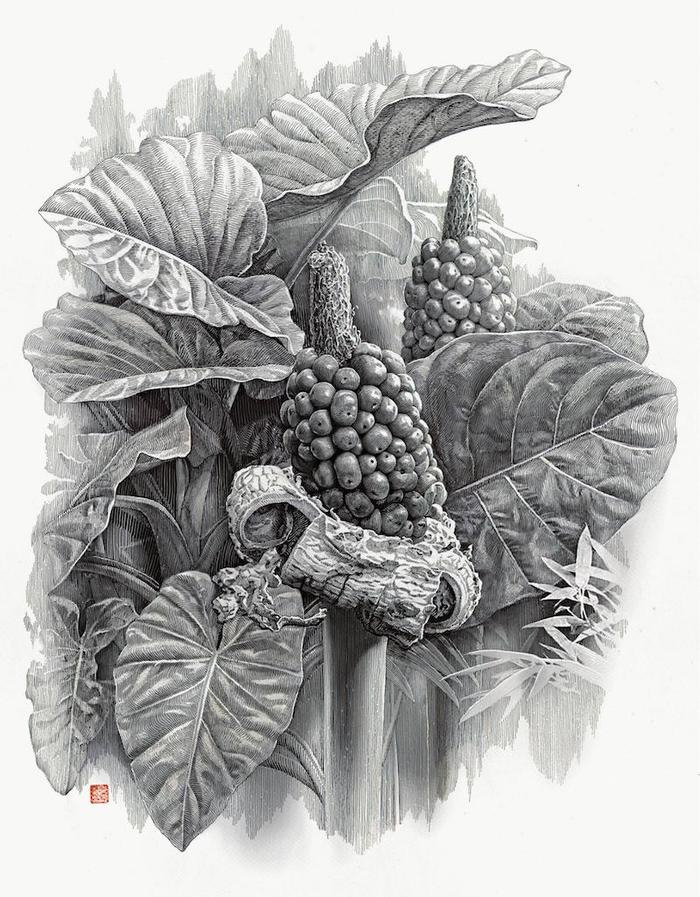 博物畫最初是由西方探險家在地理發現時作為考察動植物的一種視覺記錄方式,介于藝術與科學之間。在中國,博物畫長期處于潛隱狀態。曾孝濂以自己在博物畫方面杰出的貢獻,成功地將博物畫引入中國大眾的視野,被譽為“中國博物畫第一人”。曾孝濂驚嘆于熱帶雨林中萬千植物神奇的形態和細節,四十年來繪制植物科學畫逾2000幅。曾孝濂曾經這樣寫道:“人認識自然,總是從局部現象和細節開始,任何一個生命個體都包含著宇宙的無窮信息,盡管我們的認知膚淺,不能理解信息之萬一。但僅就生命現象的智慧和神奇,已經可以領略到造物者鬼斧神工的創造力?!?/p>