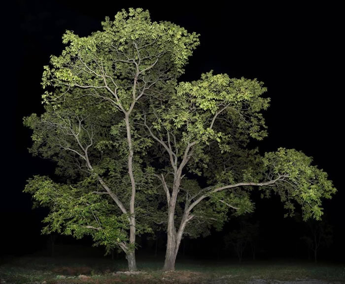 攝影家李季的《樹》系列仿佛是樹的超寫實肖像畫,在他的鏡頭下,樹是真正的主角,而不是風景,他鏡頭中的每一棵樹都展現出纖毫畢現的細節。在他作品面前,觀眾很難不以一種謙卑的心態由衷地感嘆樹的莊嚴、美麗、神秘的生命張力。李季的攝影作品有其特殊的拍攝手法,近似中國傳統的多點透視法,以及掃描式拍攝法和影像后期合成技術。他曾這樣寫道:“我所做的更像是對一棵樹進行掃描,作品中所呈現的并非一個特定的瞬間,而是對一個時間片段的重現?!蓖ㄟ^拍攝手法和后期合成的應用,李季將作品尺幅推向極致,從而實現了視覺上的震撼體驗。