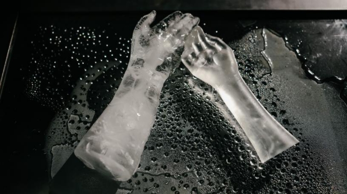 裝置:鋼、玻璃、琉璃、冰、水、冷凍柜