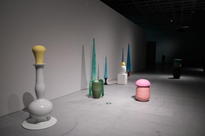 歐鳴最早為人所知的特點是用石膏作為其雕塑創作主要的材料。他利用石膏、陶瓷和水,兼具時間過程的特征,試圖在雕塑中創造一個個猶如生命般存在的有機實體。將雕塑視為體驗生命的方式,創作中他選擇停留在人力所不能及的邊界并最大程度地擁抱未知而恰恰是那些等待的時刻給予了他豐富的滋養指引著他開啟下一段的旅程。提名人凱倫·史密斯特別提到了歐鳴此次展出的作品,體量變得更大。體量上的增大也提升了制作上的復架程度。在窯爐的燒制過程中,很多容器都損壞了。但是,成功出爐的容器則以其大于實物的體量,通過其造型及絢麗彩釉彰顯出更強的沖擊感。在歐鳴的作品中,體量是實現藝術創作及藝術效果的重要元素。
