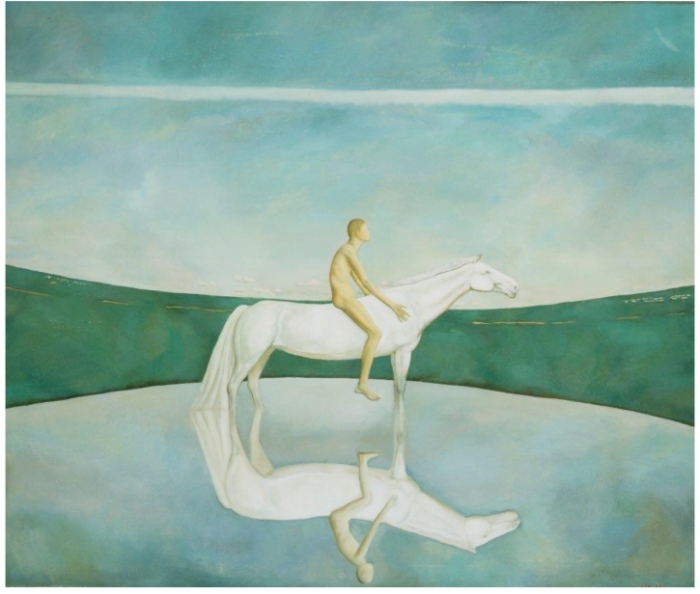 《遠行者》創作于1988年,畫面中的“白馬”后來成為朝戈早期作品中的重要意象,表達了藝術家對草原成長經歷的難以割舍,同時反映八十年代末期逐漸開始釋放的人性。