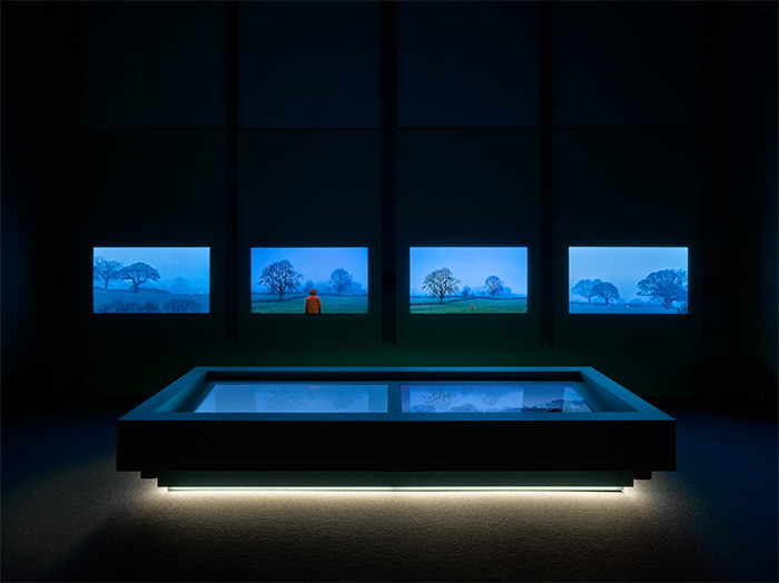 英國館是由藝術家約翰·亞康法(John Akomfrah)代表英國參展,呈現多屏影像作品——「Listening All Night To The Rain」,標題取自蘇軾的詩作《雨夜宿凈行院》中的一句“林下對床聽夜雨”。展覽從地下室的負空間延續到一樓,亞康法將八個多媒體裝置匯聚成一個沉浸式體驗的場景,多屏影像的呈現訴說著英國移民的故事。展覽是亞康法及其團隊多年來研究的成果,試圖通過歷史記錄來描述我們今天的經歷。展出作品包含全新拍攝的素材、檔案錄像片段、影片靜幀,及來自世界各地歷史檔案和圖書館的音頻和文本。通過代表英國移民社群的“記憶”講述著全球性故事,并探討多重地緣政治敘事如何在流散者的經歷中得到更廣泛地反映。