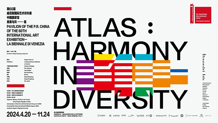 位于軍械庫(Arsenale)的中國館以“美美與共:集”為主題,由浙江大學教授王小松和獨立策展人姜俊共同策劃。展覽由“中國歷代繪畫大系”圖像文獻組成的版塊“集”,和由車建全、焦興濤、邱振中、施慧、王紹強、汪正虹、朱金石等7位中國當代藝術家作品組成的版塊“傳”兩個部分構成。展覽從“匯聚、交流、融合”的視角反思本次威尼斯雙年展的主題“處處都是外人”,在展示多元文化的同時傳遞中國傳統文化中“海納百川”“和合共生”“美美與共”的價值理念。