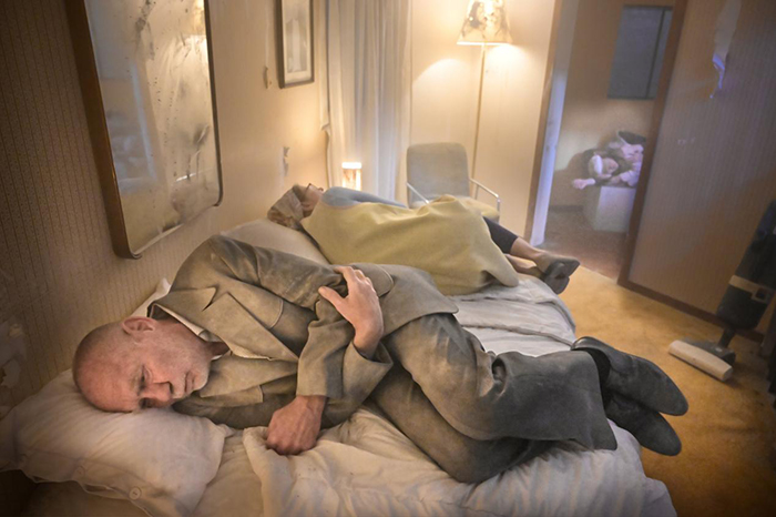震撼的視聽感受后,回到展廳中央,是搭建起的高高的混凝土墻樓,挑高的空間內,只有頂上幾扇窗戶透進微弱的光線。再次排起長隊,進入蒙塔克的作品—《一個無名者的紀念碑》。蒙塔克將其祖父的故事移植到展覽現場,一個自安納托利亞中部移民到德國的石棉廠工人,后因工作而去世。藝術家結合現場布景與表演,演員在令人窒息的空間內工作、交談、飲食、睡眠.......跟隨音樂和表演一起的,是觀眾吸入鼻腔的灰塵。蒙塔克喚起觀眾的情緒,與巴塔納震撼的“星際穿越”大片形成極大的反差。他旨在通過多元化的故事講述來叩問集體記憶,通過將移民與東德人的生平擺放在場館的中心位置,籍此對后英雄時代的歷史敘述、再現和敘事的追問置于通往工業化時代的“門檻”之上。