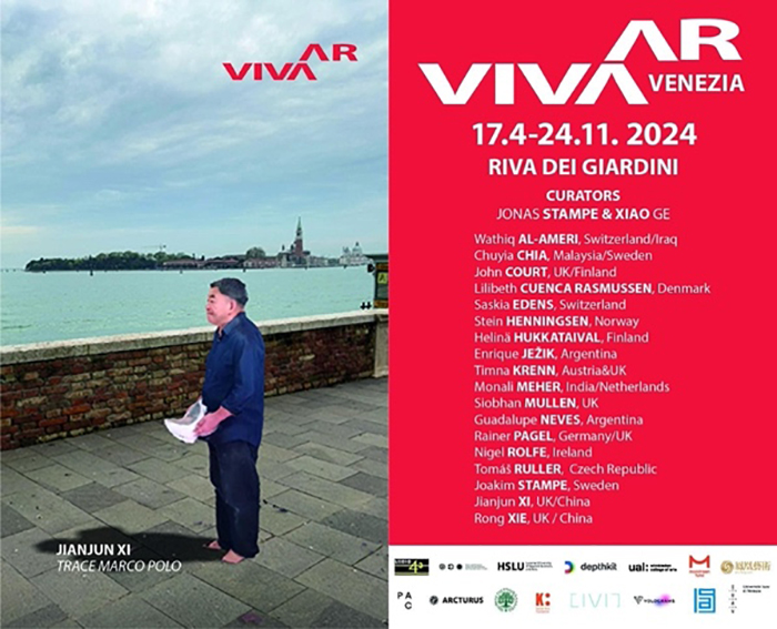 在威尼斯雙年展的場館外,許多行為藝術也在熱鬧進行。由策展人喬納斯·斯坦普(Jonas Stampe)和肖戈策劃的VIVAAR VENEZIA項目與第60屆威尼斯雙年展同期進行。展覽在威尼斯雙年展綠城花園展區附近公共空間的現實環境中,呈現18個全息行為影像,并在4月17-19日邀請行為藝術家現場表演。