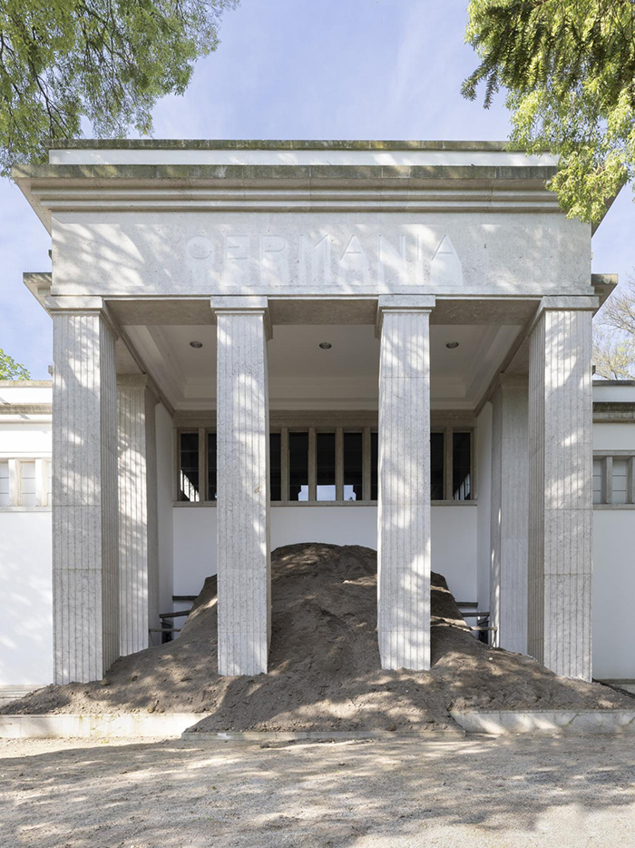 位于綠城花園的德國館是本屆雙年展獲得好評最多的展館之一??缭秸褂[空間的界限,同時結合現場表演的形式為展覽增添了更多維的體驗感。德國館由恰拉·伊爾克(?a?la Ilk)擔任策展人,以“界閾”(Thresholds)為主題,藝術家邁克爾·阿克斯塔勒(Michael Akstaller)、耶爾·巴塔納(Yael Bartana)、羅伯特·利波克(Robert Lippok)、埃爾薩·蒙塔克(Ersan Mondtag)、妮可·盧利爾(Nicole L’Huillier)和楊·圣沃納(Jan St. Werner)代表參展。耶爾·巴塔納和埃爾薩·蒙塔克的作品在綠城花園的德國館內展出,其他幾位藝術家的作品則在切爾托薩島上展出。