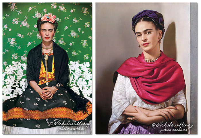 為瑪麗?畢克馥和范朋克拍攝雙人肖像的是匈牙利猶太裔美籍攝影師尼古拉斯·穆雷,他是1920年代《Vogue》、《名利場》的御用肖像攝影師之一,還曾代表美國國家隊參加過1928年和1932年夏季奧運會的擊劍比賽。墨西哥藝術家弗里達最著名的肖像幾乎全部出自穆雷之手,二人于1930年代弗里達旅居美國期間斷斷續續保持了近十年的情人關系,后來分手了也不散交情,直至1954年弗里達去世,他們一直是很好的朋友。