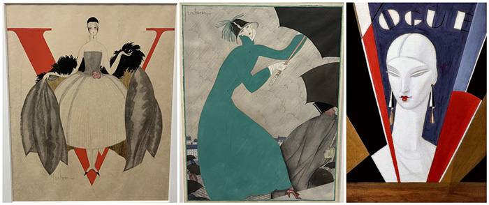 左圖:喬治·勒帕普(Georges Lepape,1887-1971),1920;中圖:喬治·勒帕普,1921;右圖:愛德華多·加西亞·貝尼托(Eduardo García Benito,1891-1981),1926