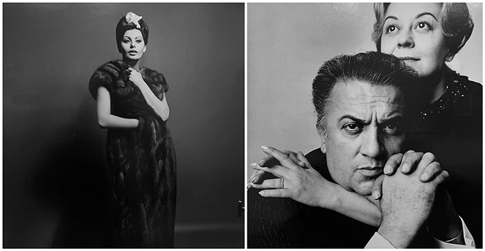 左圖:《索菲亞·羅蘭》(Sophia Loren,1934年至今,奧斯卡首位意大利籍影后、第一位憑借非英語表演獲得奧斯卡獎的演員),攝 /伯特·斯特恩(Bert Stern,1929-2013,美國商業攝影師),1963;右圖:《費里尼夫婦》(Federico Fellini,1920-1993,意大利電影大師;Ciulietta Masina,1921-1994,意大利演員、戛納電影節最佳女演員),攝 /歐文·佩恩(Irving Penn,1917-2009),1965