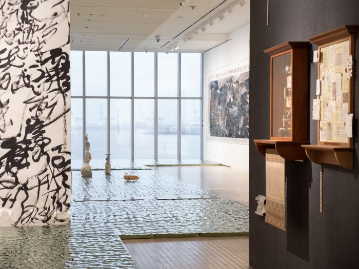 2024年4月13日至27日,“青山行不盡:山海渡遠”唐詩之路藝術展在大阪文化館·天保山開幕,展覽匯集多位中日藝術家的書法、國畫、漆畫、綜合材料繪畫、雕塑、攝影、影像、裝置等七十余件作品;展覽通過打造“三山三境”,從千年前的舟船水路視角,從遠望大海的開闊心境,到峰回路轉的身體體驗,貫通中日藝術的跨媒介現場,回溯一條獨特的中日海上唐詩之路。