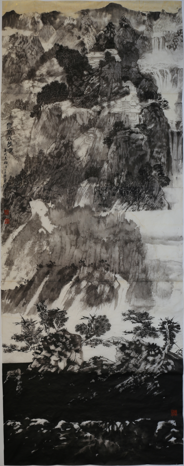 卓鶴君《泉高入夢喧》紙本水墨 388x153cm 2015乙末