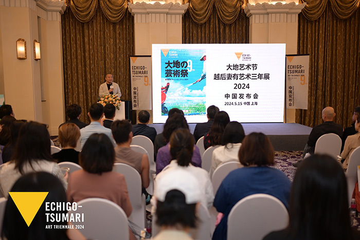 2024年5月15日,“大地藝術節-越后妻有藝術三年展2024”中國新聞發布會在上?;▓@飯店舉行。越后妻有大地藝術節實行委員會委員長關口芳史,越后妻有大地藝術節總監北川富朗,瀚和文化創始人、大地藝術節中國項目總策劃人孫倩,NPO越后妻有里山協動機構和ART FRONT GALLERY代表,中國藝術家代表馬巖松、劉建華、施勇、沈烈毅、TANGO,以及文化藝術界與媒體嘉賓共同出席了發布會。此次發布會是“越后妻有大地藝術節”創辦25年來的一次具有里程碑意義的國際推介活動,由越后妻有大地藝術節實行委員會與北京瀚和文化傳播有限公司攜手舉辦。本屆藝術節將于2024年7月13日-11月10日期間舉行,北川富朗擔任總監。