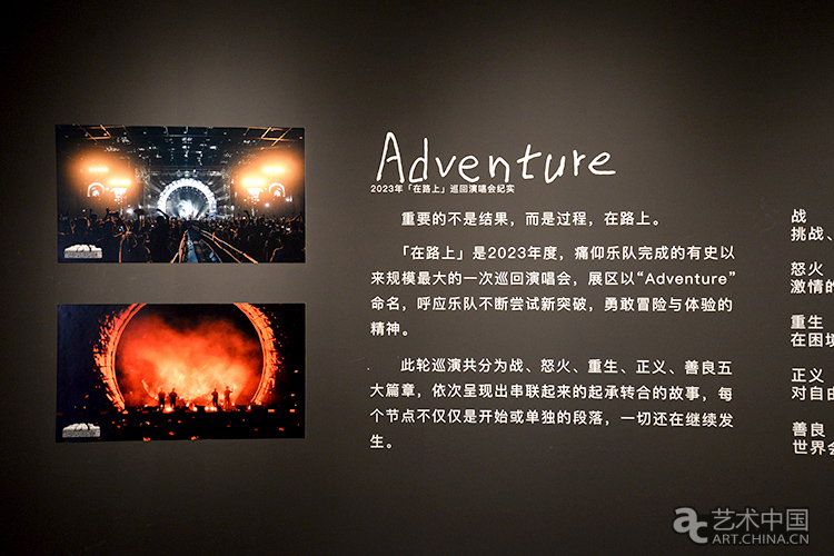 Adventure,作為展覽的開篇,以樂隊2023年“在路上”巡回演唱會為主題,展?巡演的原創舞臺設計、視覺創意、巡演攝影作品及紀錄?等,以紀念這?重要“冒險歷程”的順利收關。