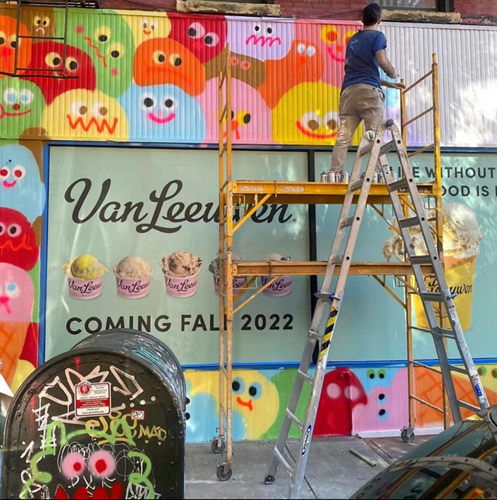 藝術家為冰淇淋店Van Leeuwen新店繪制外墻