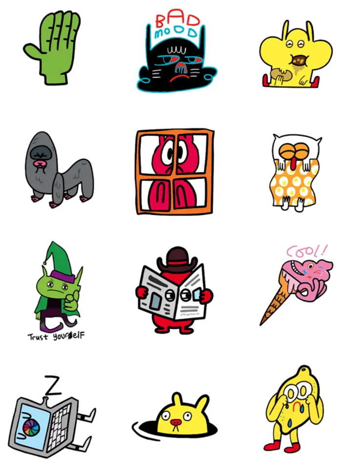 Jon Burgerman為Apple設計的iMessage電子貼圖充滿了他標志性的俏皮活潑風格,使得日常通訊變得更加有趣和個性化。
