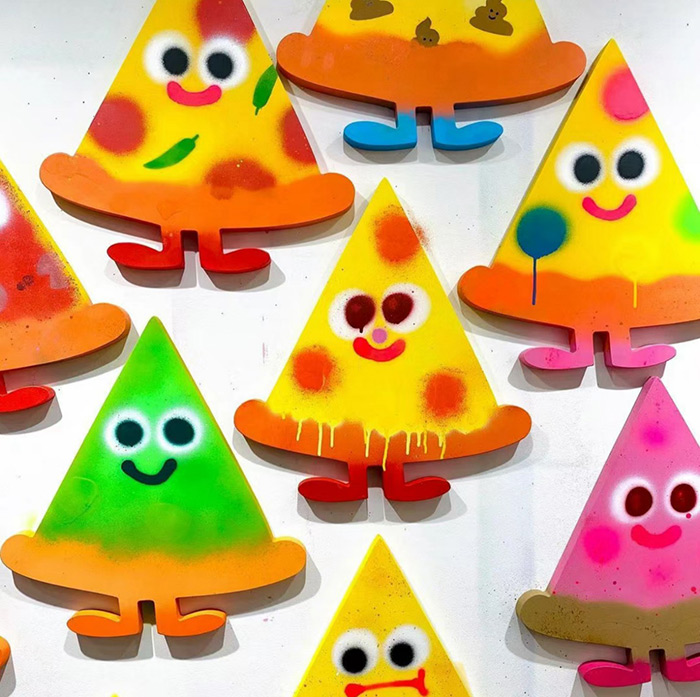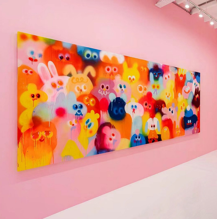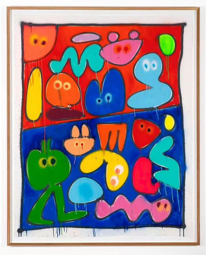 Jon Burgerman不僅僅局限于傳統畫布上的創作,他也利用各種非傳統材料和媒介進行藝術探索,比如墨水、噴繪、數字和動畫。這種跨媒介的嘗試不僅豐富了他的藝術語言,也使他的作品能夠觸及更廣泛的觀眾群體。從街頭涂鴉到室內壁畫,從數字媒體到互動裝置,Jon Burgerman的藝術實踐體現了他對新材料和技術的不斷探索和應用。