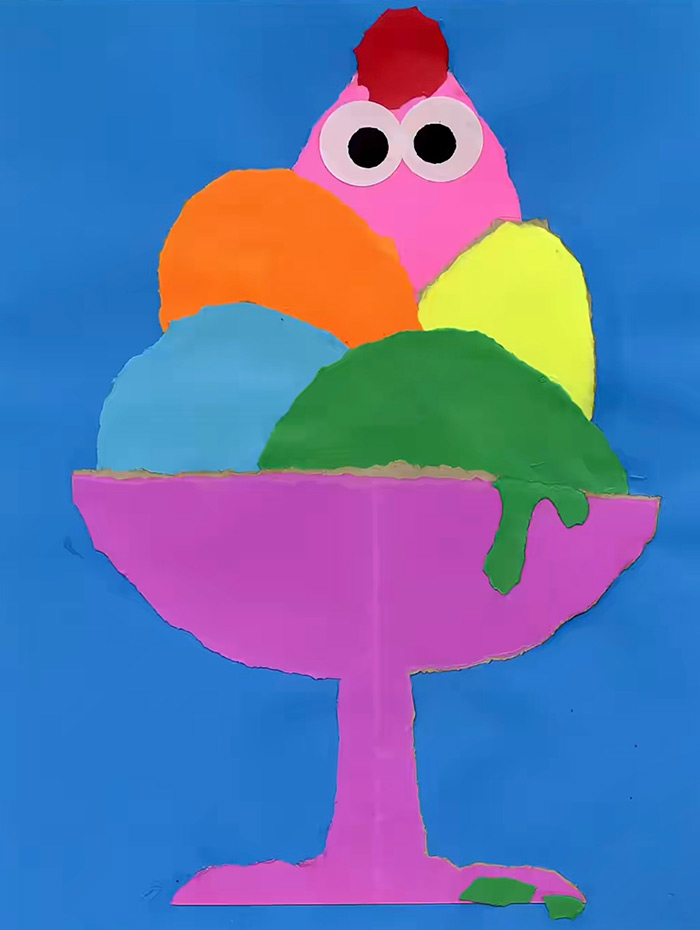 一個躲在冰淇淋圣代里的咪咪,撕紙拼貼