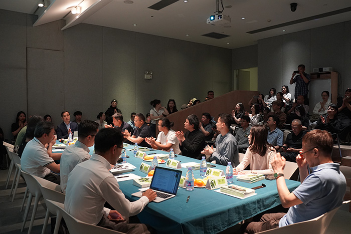 5月29日上午,以“當下文化鄉建的探索與省思”為題的研討會在合美術館負一樓多功能廳舉辦。安徽大學新聞傳播學院副教授左靖,武漢大學社會學院教授楊華,中電光谷文創研究所所長、本兮展覽策展人仇海波,上海市公共藝術協同創新中心研究員、本次展覽策展人歐陽甦,河南修武縣大南坡村運營負責人王凱,無名營造社創始人、主持建筑師陳國棟,中國美術學院副教授、杭州MOMENTUM建筑事務所主持建筑師黃明健,羊磴藝術協會秘書長付臣亮,藝術家柯明,合美術館執行館長魯虹,湖北美術學院教授劉茂平,湖北大學旅游學院教授李志飛,中央美術學院博士俞衫杉等共同探討了鄉村文化建設的現狀以及未來發展方向。