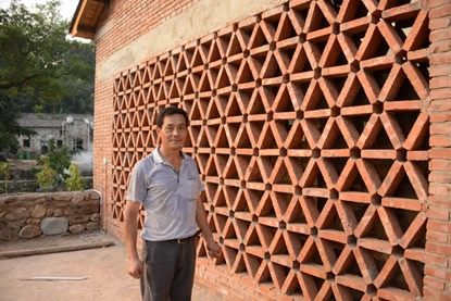 工匠張思齊,運用手藝完成了鏤空磚花墻的施工(攝影:何崴)